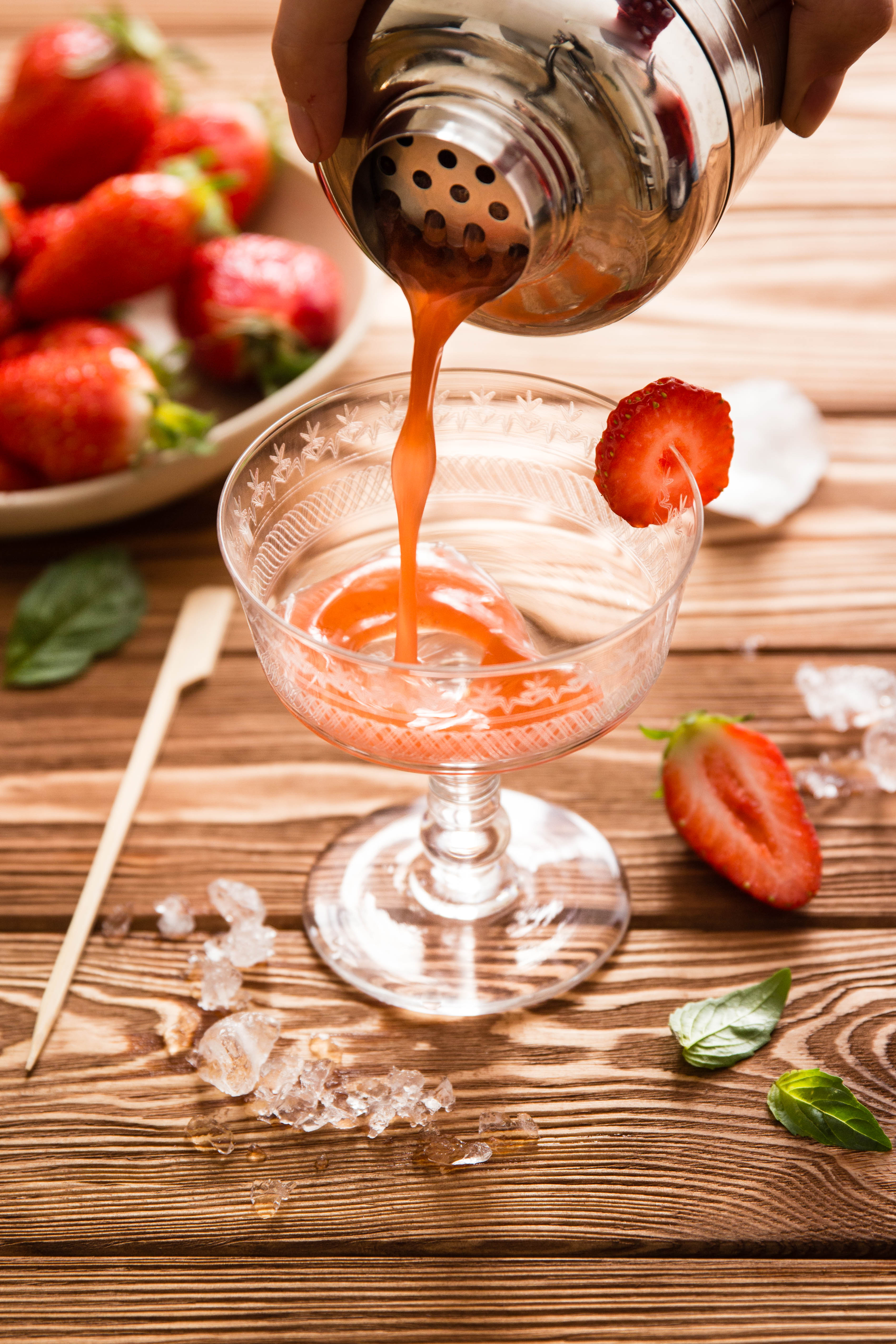 2 – Dans un blender mixer le jus de pamplemousse, les fraises et le sirop. Verser le jus dans un shaker, ajouter quelques glaçons, et shaker énergiquement pour frapper le mélange. Ajouter le cidre rosé, et servir immédiatement. Astuce : Mettre tous les ingrédients au frais au moins 1h avant la réalisation, pour un cocktail bien frais.