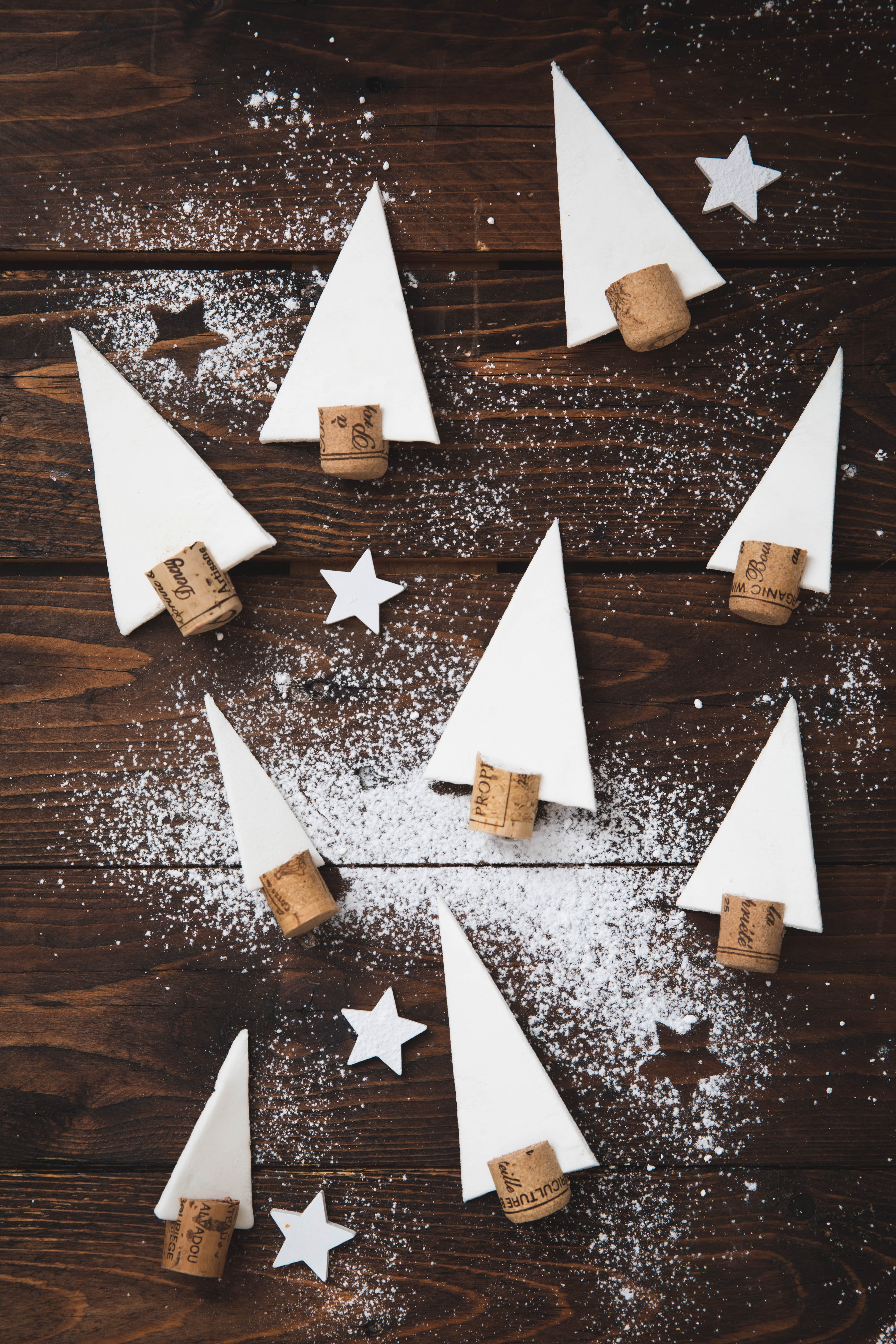Let it snow ! Pour ce nouvel article de Noël, je vous propose un DIY décoration réalisable avec des ingrédients trouvables dans la cuisine. Le principe ? Le même que celui des décorations de Noël en plâtre alimentaire, réaliser des figurines triangulaires à planter dans des bouchons en liège. Objectif : obtenir une jolie petite forêt de sapins !