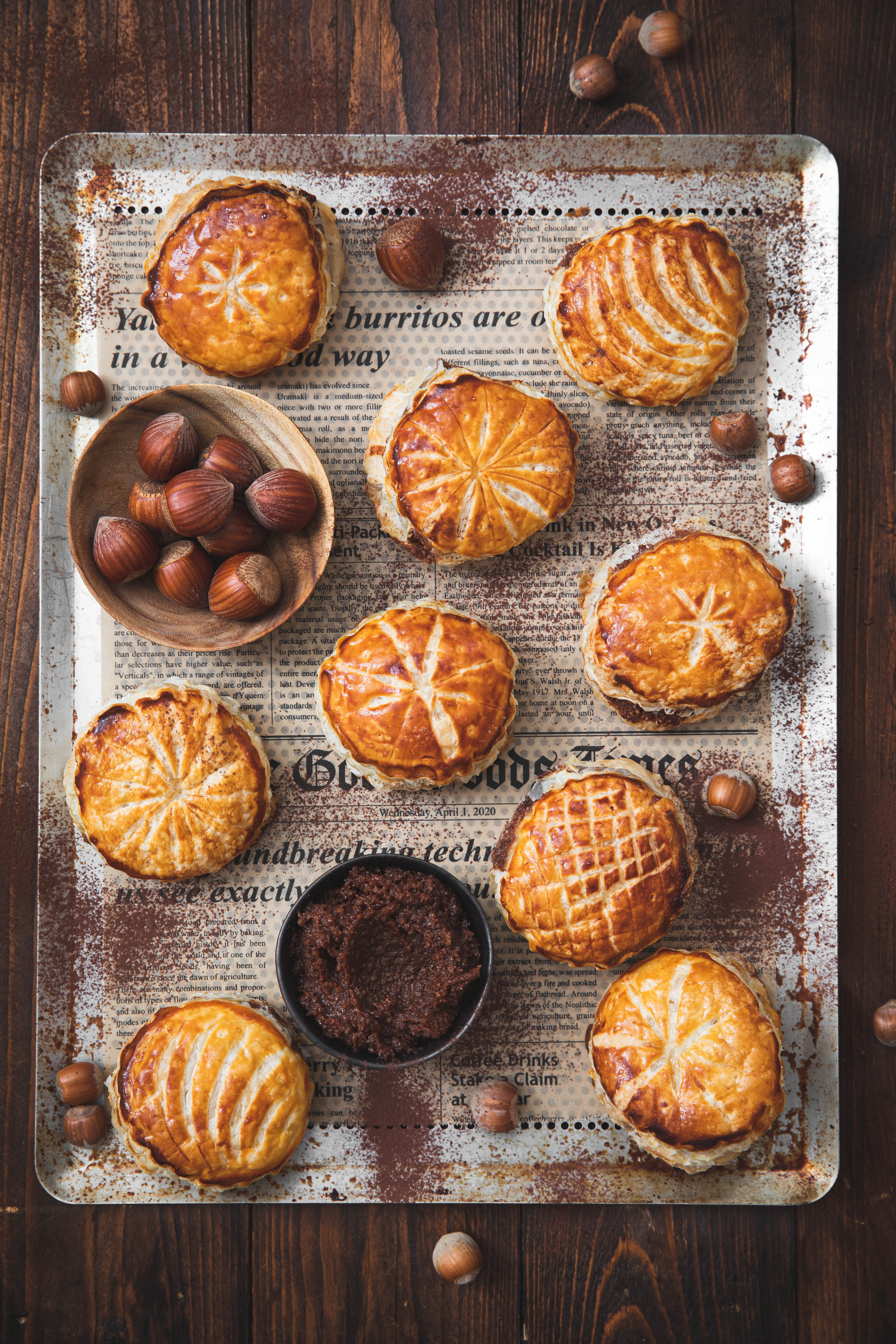 Pas de frangipane classique pour ces mini galettes, mais une crème de noisette au cacao bien riche, qui se marie à la perfection avec quelques rondelles de banane. Les étapes de préparation sont archi-simples, le plus important restant bien sûr de ne pas oublier de glisser la fève au cœur de l’une de ces mini galettes.